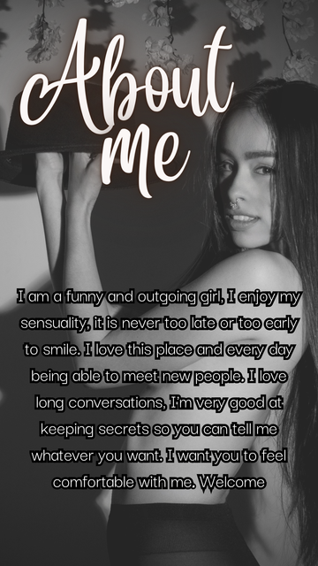 Sou uma garota doce e sociável que gosta de experiências, novas aventuras e desafios a cada dia. Adoro praticar ioga e posso dizer que sou muito flexível.